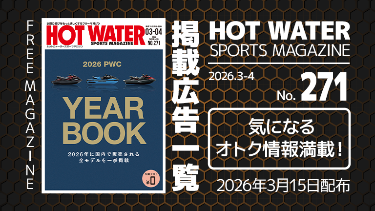 掲載広告一覧 2026年3月15日配布の、ホットウォータースポーツマガジン271号に掲載している、広告ページ一覧です。見出しをクリックすると、広告主ホームページへとジャ […]
