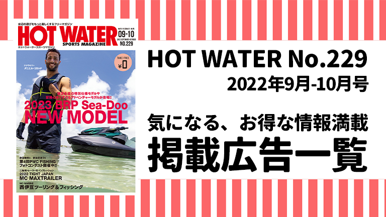 掲載広告一覧 2022年9月15日配布の、ホットウォータースポーツマガジン229号に掲載している、広告ページ一覧です。見出しをクリックすると、広告主ホームページへとジャ […]