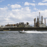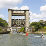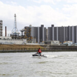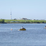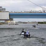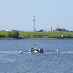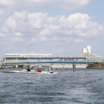 江戸川水閘門を通過して旧江戸川に入ると、そこからは徐行エリアが多数点在。1列に並んでしっかり徐行していきますが、ここでひとつ興味深い出来事が。