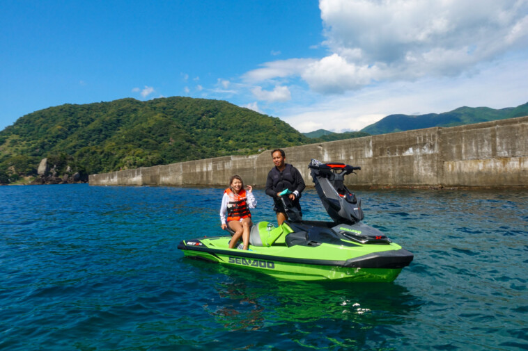 まずは伊豆水上バイク安全協会の協力のもと、松崎港から水上バイクを下ろして出航していきます。