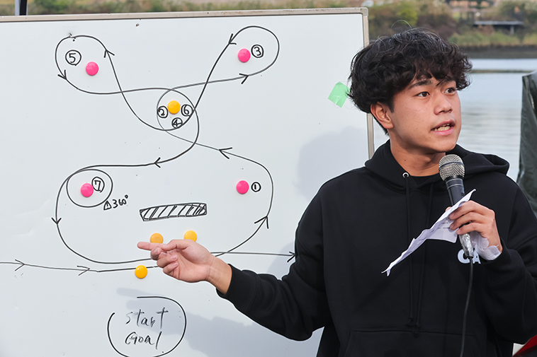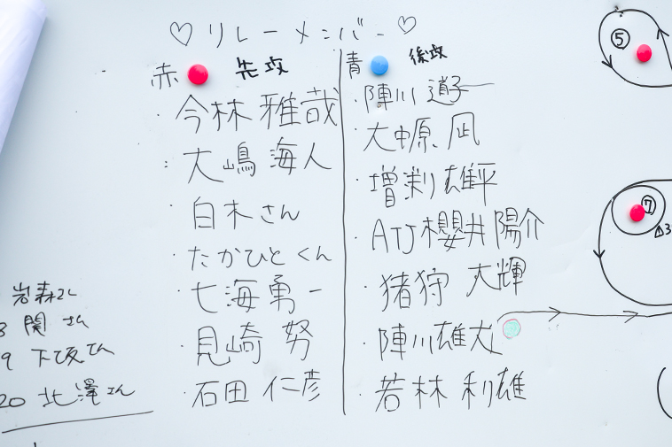 赤組と青組にわかれて各7名の合計タイムで勝敗を決します。