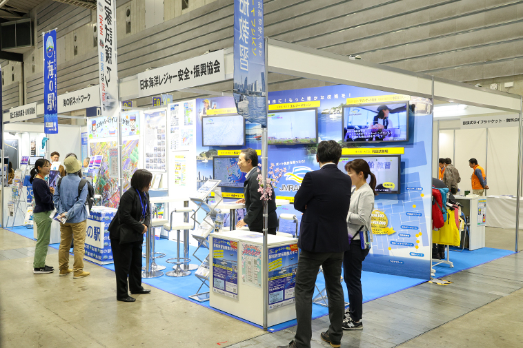 水上バイク免許の試験機関である『日本海洋レジャー安全・振興協会』のブースでは、全国各地で開催している免許取得後の「操船教習(ボート)」を動画でPR。