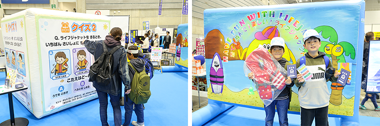 『マリンスポーツ財団』のブースでは、ライフジャケットに関する全4問のクイズを出題。