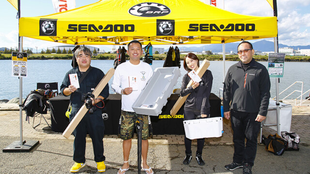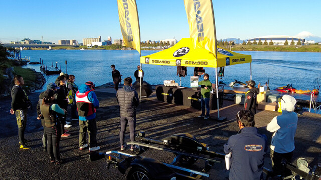 今回はジェットフィールド湘南(神奈川県平塚市)のメンバーと特別招待枠のみの限定参加となりましたが、9艇のFISH PRO( 釣り仕様のGTX LIMITED 300も含む)が集まり、釣り歴40年の大ベテランから免許取り立てのビギナーまで、幅広いアングラーが参加してくれました。