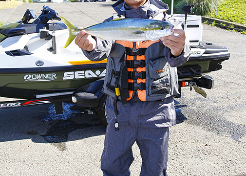 水上バイクフィッシング歴はわずか1か月でFISH PROも進水式を終えたばかりでしたが、良型のシイラを複数本キャッチして文句なしの優勝となりました。