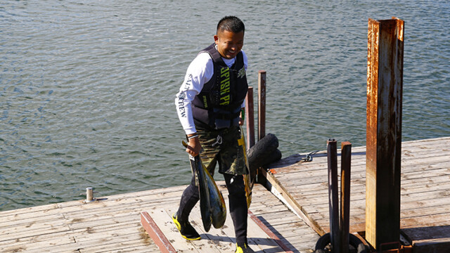 免許を取ったばかりで水上バイクフィッシングも2回目ながら、しっかり結果を残すあたり、さすがの腕前。