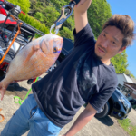 ①5月4日 ②須佐 ③イサキ(40cm)、タイ(55cm)、ヒラゴ(65cm)④今年1発目の釣行でしたが中々釣れて楽しかった!️⑤アーニーズブロス ⑥シズキマリーナ