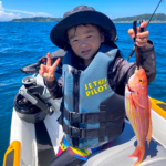 ①8月1日 ②館山 ③マダイ、イトヨリダイ、マハタ、ホウボウ ④6歳の息子、ジェット釣りデビューで真鯛、イトヨリダイ、ホウボウをゲット! サイズも良く「オモイ、オモイッ!」と言いながらリールを巻いていました!⑤MG MARINE ⑥MG MARINE ●HOT WATER No.229掲載(2022年9月15日配布)
