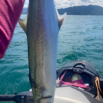 ①8月22日 ②相模湾 ③ワラサ(70cm)、ホウボウ(40cm)④朝イチはバラしてばかりでしたが、なんとか釣れました!!やはり青魚の引きはたまらなく楽しいですね(^^)⑤Jet Ski Shop BRO、ネオスポーツ ⑥ハーバー湘南 ●HOT WATER No.230掲載(2022年10月15日配布)