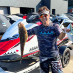 ①9月11日 ②松山市沖 ③ツバス(35cm)④満潮の時間と曇り具合が良かったので、ひょっとしてと思い、釣竿一本持ってでかけました。古い小さなPWCなので、踏ん張るのと取り込みに苦労しました。でも狙ったポイントにすぐに行けるPWCの機動力は、ルアーフィッシングに最適です!●HOT WATER No.230掲載(2022年10月15日配布)