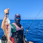 ①9月28日 ②沖縄県名護 ③オオヒメ(39cm)④We found some tasty fish at 110m ⑤オートヒラカワ ⑥嘉手納マリーナ ●HOT WATER No.231掲載(2022年11月15日配布)