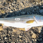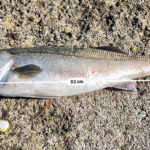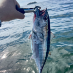 ①10月15日 ②宮城県東松島市 ③スズキ(82~88cm)④ジギングで釣れました。チビマグロは写真だけ撮ってリリース。スズキは持ち帰り、美味しくいただきました。⑤マリンメカニック ●HOT WATER No.232掲載(2022年12月15日配布)