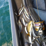 ①9月3日 ②相模湾 平塚沖 ③カマス13匹、ワカシとアジ、サバはリリース ④今年の相模湾はシブいので、ジグサビキで小物を攻めました。⑤ガレージワン ⑥湘南マリーナ ●HOT WATER No.242掲載(2023年10月15日配布号)