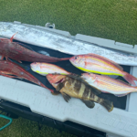 ①9月13日 ②相模湾 ③タチウオ(107cm)、ホウボウ、アオハタ、イトヨリダイ ④ジェット釣り仲間4人で出艇。たくだん釣れました!イトヨリダイは、友人の板前さんが食べてみたいというので、差しあげました。⑤Jet Ski Shop BRO ⑥breeze湘南 ●HOT WATER No.242掲載(2023年10月15日配布号)