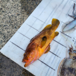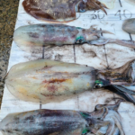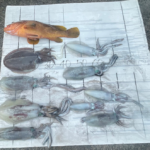 ①10月14日 ②角島 ③キジハタ(50cm)、コウイカ・アオリイカ(20~40cm)④波、風もなく珍しく釣り日和だったので、初めてティップランの練習をしたら、ビギナーズラックで釣れました。エギにキジハタが掛かった時はビックリで焦りました。⑤サーフサイド ⑥サーフサイド ●HOT WATER No.244掲載(2023年12月15日配布号)
