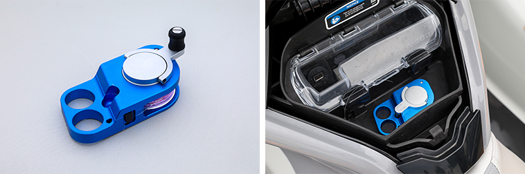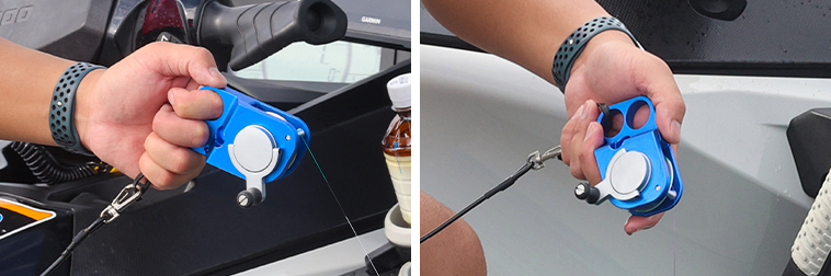 ポケットサイズの本体は持ち運びが容易で、水上バイクのグローブボックス内にもラクラク収納が可能。