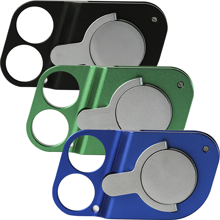 ● 幅520mm × 高さ100mm ×厚み270mm( ハンドル部分含む) ●指穴直径220mm ●重量150g ●ギア比4(ハンドル1回転でスプール4 回転) ●アルミニウム合金製