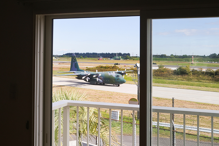建物の目と鼻の先に滑走路があり、普段はなかなかお目にかかれない戦闘機や輸送機が間近に見られるため、飛行機撮影が趣味なら最高のスポットといえます。