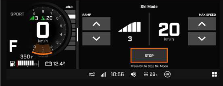 WAKE PRO 230には伸縮式のスキーパイロンやボードラックなどのウェイクスポーツを楽しむための装備が充実していますが、専用機能である『Skiモード』も特徴のひとつ。
