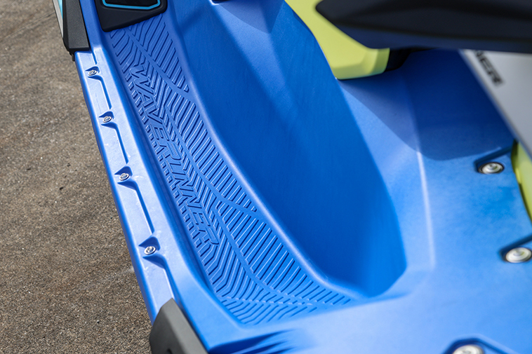 フットデッキにはマットがなく、船体の成形で滑り止めの凹凸を実現