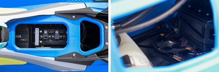 プラグやバッテリー、燃料タンク、ヒューズ類などのデイリーメンテナンスはシート下もしくは船体横のアクセスパネルから可能