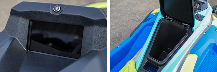 4.3インチのコネクスト・マルチファンクションディスプレイはJetBlaster専用のGUIが採用され、ドライブコントロールやエンジンロックなどの機能も搭載。深さのあるグローブボックスも用意されています