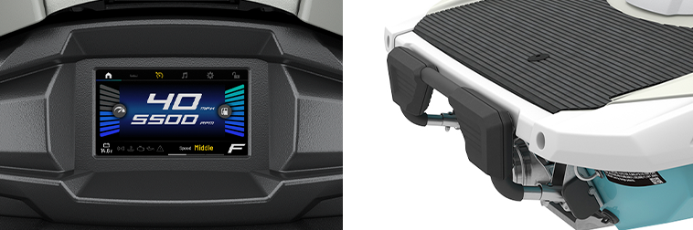 専用開発のオーディオやフルカラーディスプレイ、足をかけやすいリボーディングステップなど、装備も充実しています。