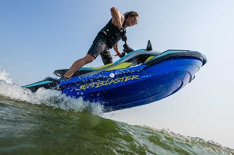 JetBlaster PROには可動域を拡張したエレクトリック・トリム・システムと足を置くことで大胆なうしろ荷重を可能にするフットチョックスが装備され、様々なアクションが可能に。