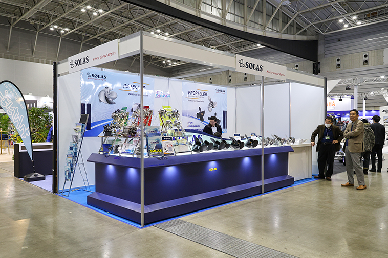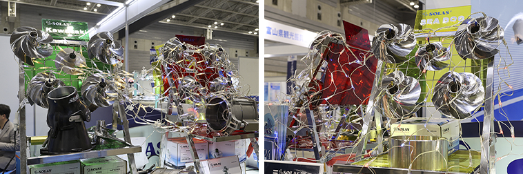 ソラスブースでは水上バイク各メーカー用の高性能インペラを展示。