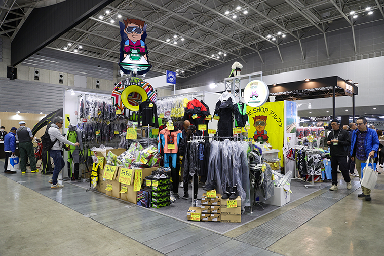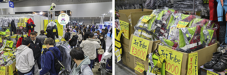 マリンショップアルファのブースでは、JETTRIBEのウェア類を中心にボートショー特別価格で販売。