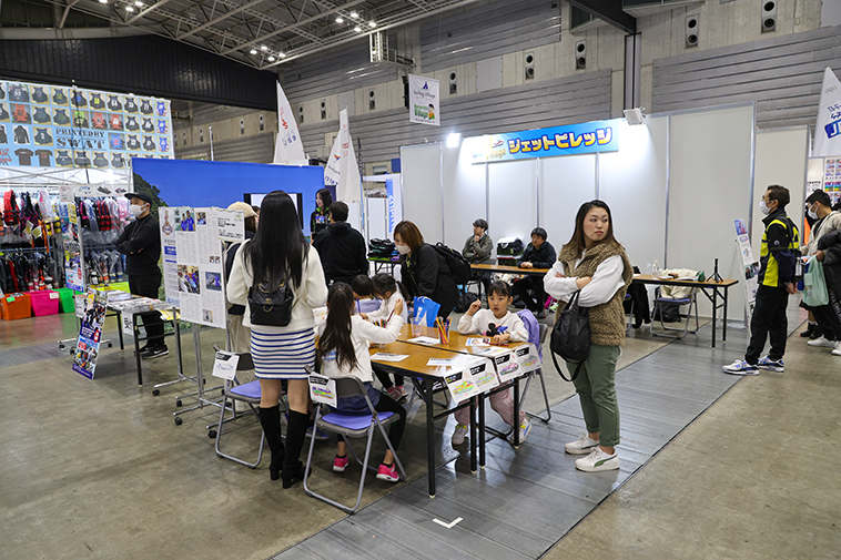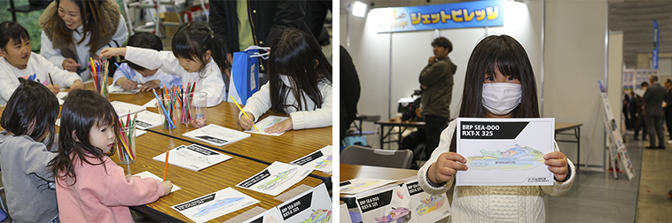 ジェットビレッジのブースでは、水上バイクの塗り絵や親子撮影会が盛況。