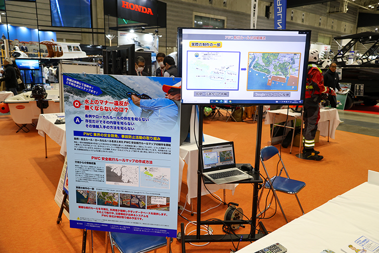 水上バイクメーカー各社と業界団体が協力して開発を進める『安全航行ルールマップ』のプロモーションもおこなわれていました。