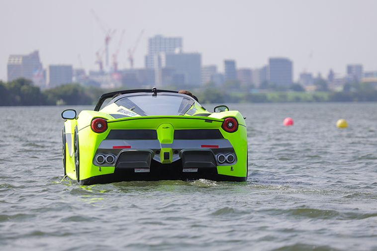 アッパーデッキはどこからどう見ても名だたるスーパーカーで、それが水上を疾走しているのだから当然のごとく世界中でバズったわけです。