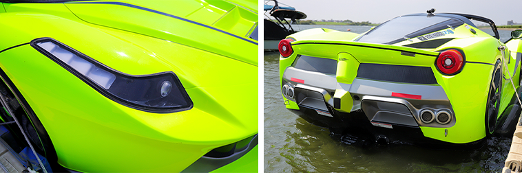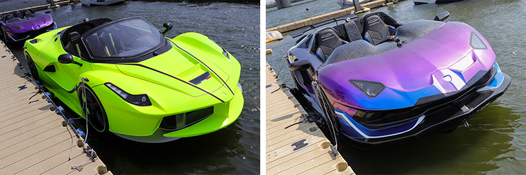 ラ○ボルギーニやフェ○ーリが水上を走っている!?