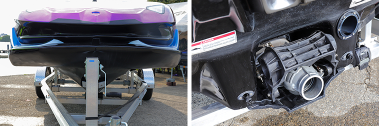 ●サイズ:全長16.4フィート(約4998mm)×全幅8フィート(約2438mm) ●重量:約798kg ●エンジン:ヤマハ1.8L 過給器付き(250馬力)or 1.9L 自然吸気(200馬力) ●燃料タンク容量:70L ●免許:2級小型船舶免許 ●定員:2名