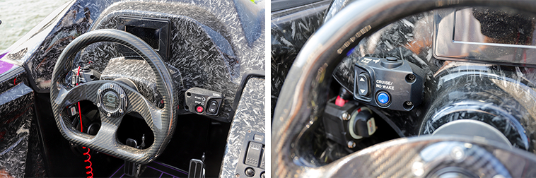 スロットル操作はフットペダルでステアリングもクルマそのもの。