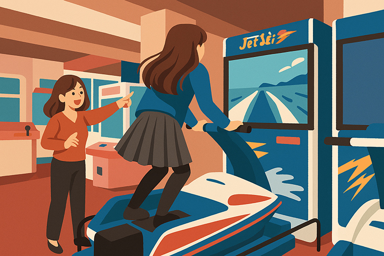 1996年にナムコ(現バンダイナムコエンターテインメント)からリリースされたアーケードゲーム『アクアジェット』は、スタンドアップタイプの水上バイクを再現した大型筐体が当時のゲームセンターで大きな注目を集めました。