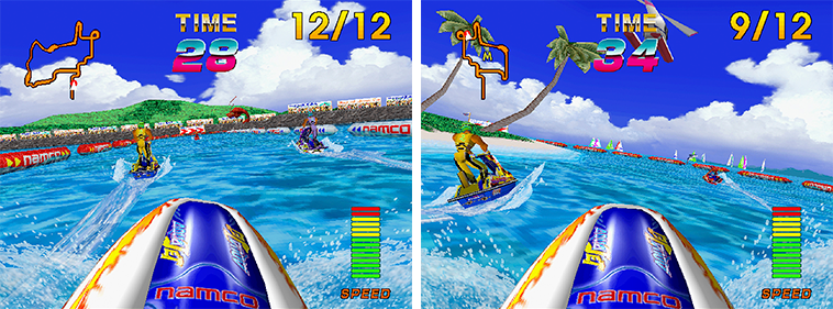 当時ゲームセンターで実機をプレイした経験があるひとは懐かしさでニンマリできるでしょうし、もちろん小さなお子さんでも楽しめるゲームなので、秋の夜長や寒い冬のあいだは、自宅で水上バイクレースを楽しんでみてはいかが?