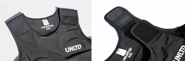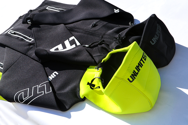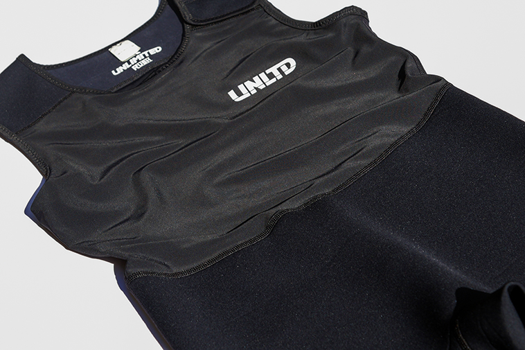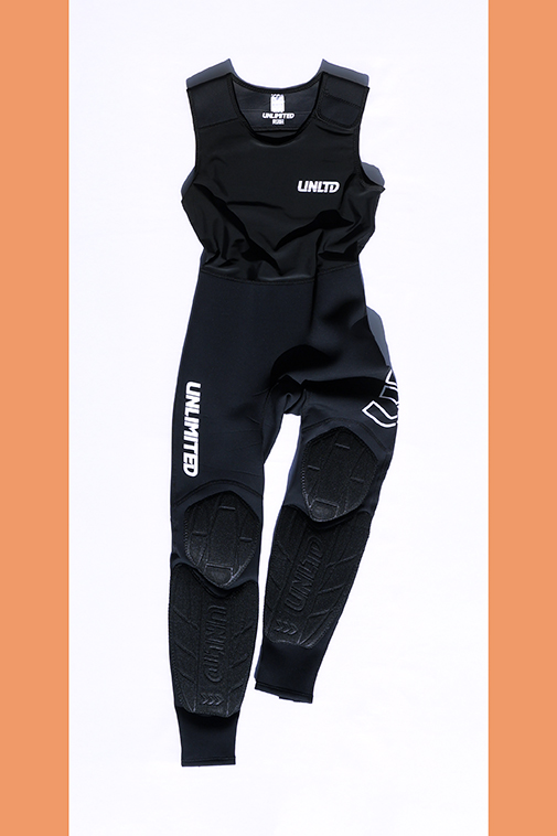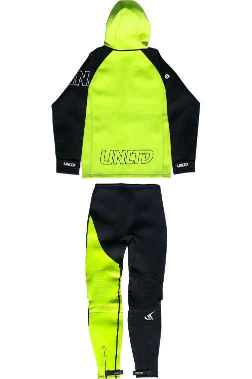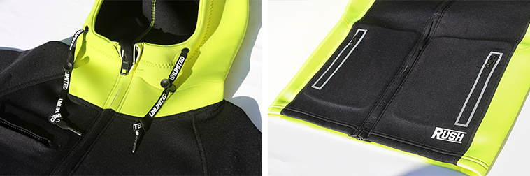 肩部分はネオプレンで耐久性を向上し、下半身には伸縮性にすぐれる1.5mmフレックスネオプレンを採用。