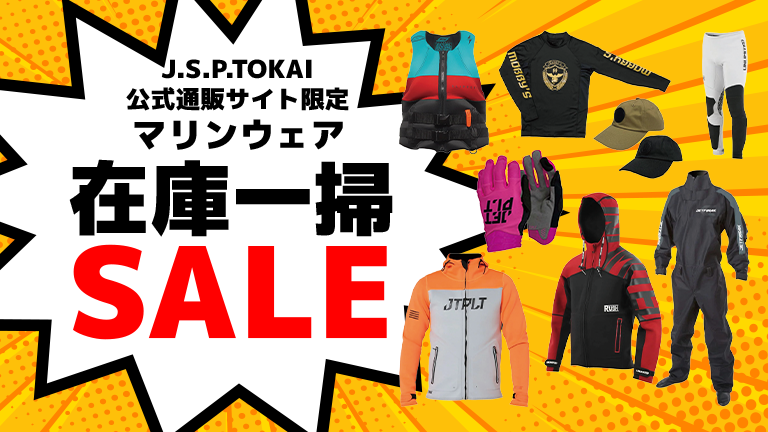 J.S.P.TOKAIは公式通販サイトにて、UNLIMITEDやJETPILOT、MOBBY’S、SLIPPERY、JETFREAKなど有名ジェットウェアブランドのアイテムが最大50%OFFになる、マリンウェア在庫一掃セールを開催中です。