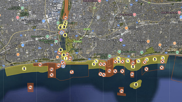 PWCエキスパートガイドマップ公開地域を航行する際は、マップを活用して安全航行、ルール遵守を心がけてください。