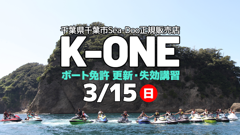 千葉県千葉市のSea-Doo正規販売店K-ONEは、2026年3月15日(日)にボート免許の更新・失効講習を開催します。