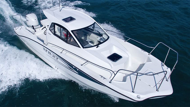 YAMAHA YFR-27HMEXは、Helm Master EX搭載の即戦力スポーツフィッシング艇。広いデッキと高い安定性、F250の爽快な走りに加え、オートパイロット機能で操船も快適。明るいキャビン&電動トイレも完備しています。