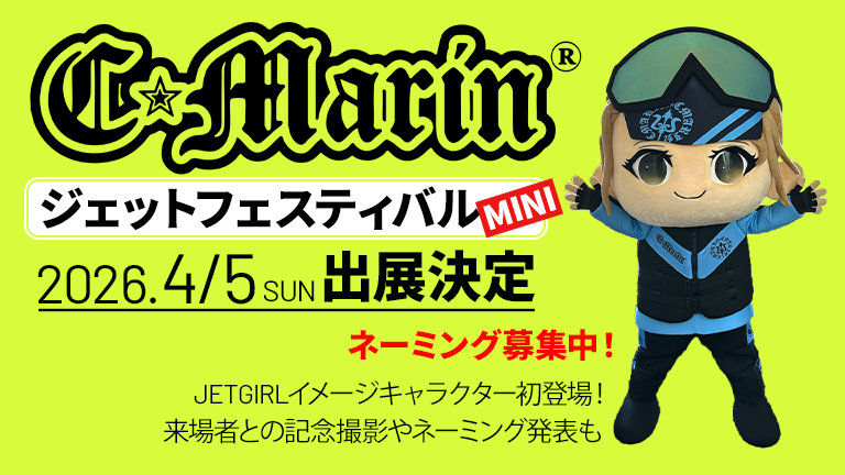 水上バイク用品やマリングッズ、ビーチウェアなどを展開するライフスタイルブランドC.Marinが、2026年4月5日(日)に開催される3メーカー合同試乗会FUN TO RIDEと同時開催の「ジェットフェスティバルMINI」に出展。ブースではイベント限定セールや先行販売に加え、公式Instagramでネーミングを公募中のJETGIRLイメージキャラクターの着ぐるみも初登場。来場者との記念撮影のほか、正式名称も発表される予定です。
