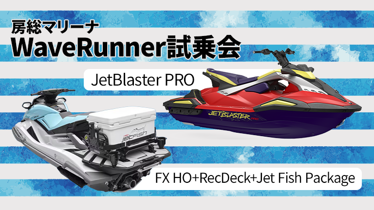 千葉県いすみ市の房総マリーナでは、2026年4月26日(日)と5月2日(日)に、2026年モデルWaveRunner JetBlaster PROと、WaveRunner FX HOのリアデッキにRecDeckとJETFISHパッケージを搭載したジェットフィッシング仕様の試乗会を開催します。房総マリーナメンバー以外でも試乗可能です。