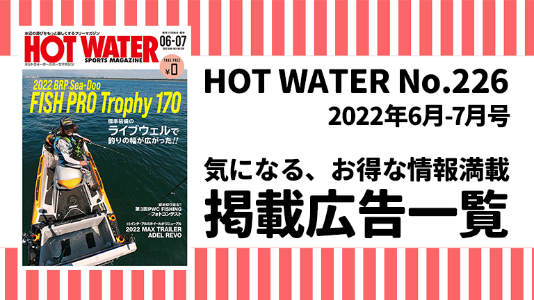 月刊ホットウォータースポーツマガジンNo.226は、2022年6月15日(水)から、全国の水上バイク販売店、マリーナなどのマリン関連施設にて、無料配布をしています。 ※ […]