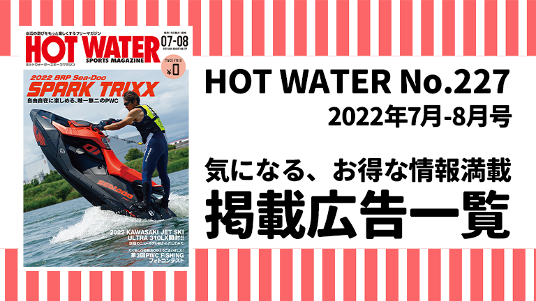 月刊ホットウォータースポーツマガジンNo.227は、2022年7月15日(金)から、全国の水上バイク販売店、マリーナなどのマリン関連施設にて、無料配布をしています。 ※ […]